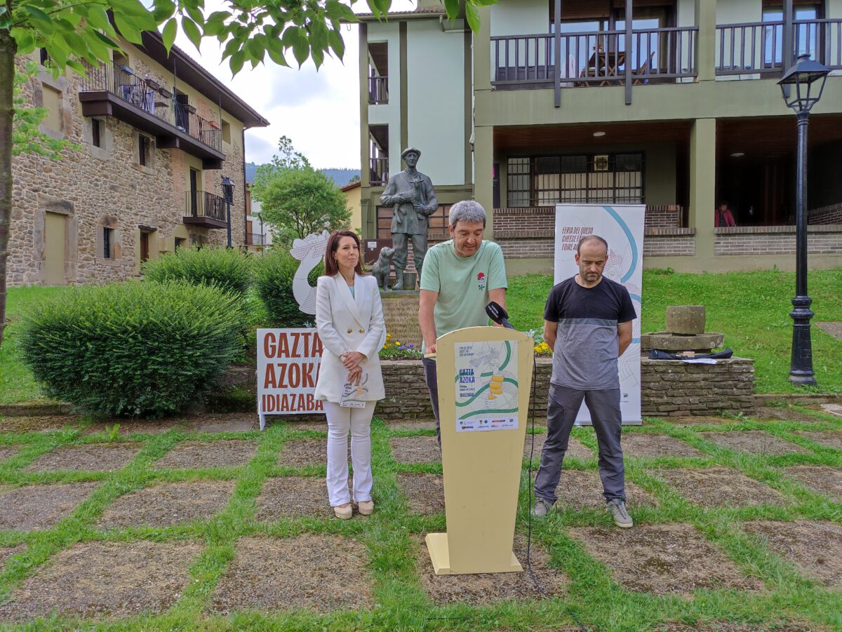 Azahara Dominguez diputatua, Iñaki Alberdi alkatea eta Ander Barandiaran artzaina.Loinaz Agirre. 28. Gazta Azoka izango da maiatzeko lehen asteburuan Idizabalen. Iñaki Alberdi Idiazabalgo alkateak aurkezpenean aurreratu duenez, “aurten ere asteburu osoko egitaraua antolatu dute. Azokaz gain, mami eta gazta txapelketak, erakustaldiak eta adin guztietarako animazioak izango dira”.