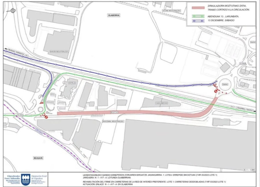 Olaberri parean, N-I errepidearen lotunean, egingo dituzten asfaltatze lanek zirkulazioan eragina izango dute bihar, larunbata, goizeko 08:00etatik arratsaldeko 19:00etara. Bertatik pasa nahi dutenek seinaleztatuta egongo diren bide alternatiboak erabili beharko dituzte.