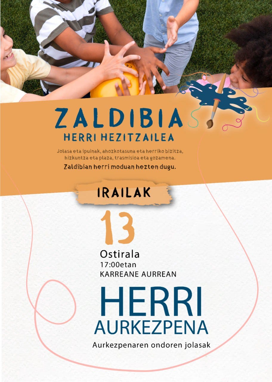 Hitza Irailaren 13an, 17:00etan, Zaldibia herri hezitzailea herri aurkezpena egingo dute Zaldibian, Karreane kultur etxearen atarian. Aurkezpenaren ondoren jolasak izango dira.