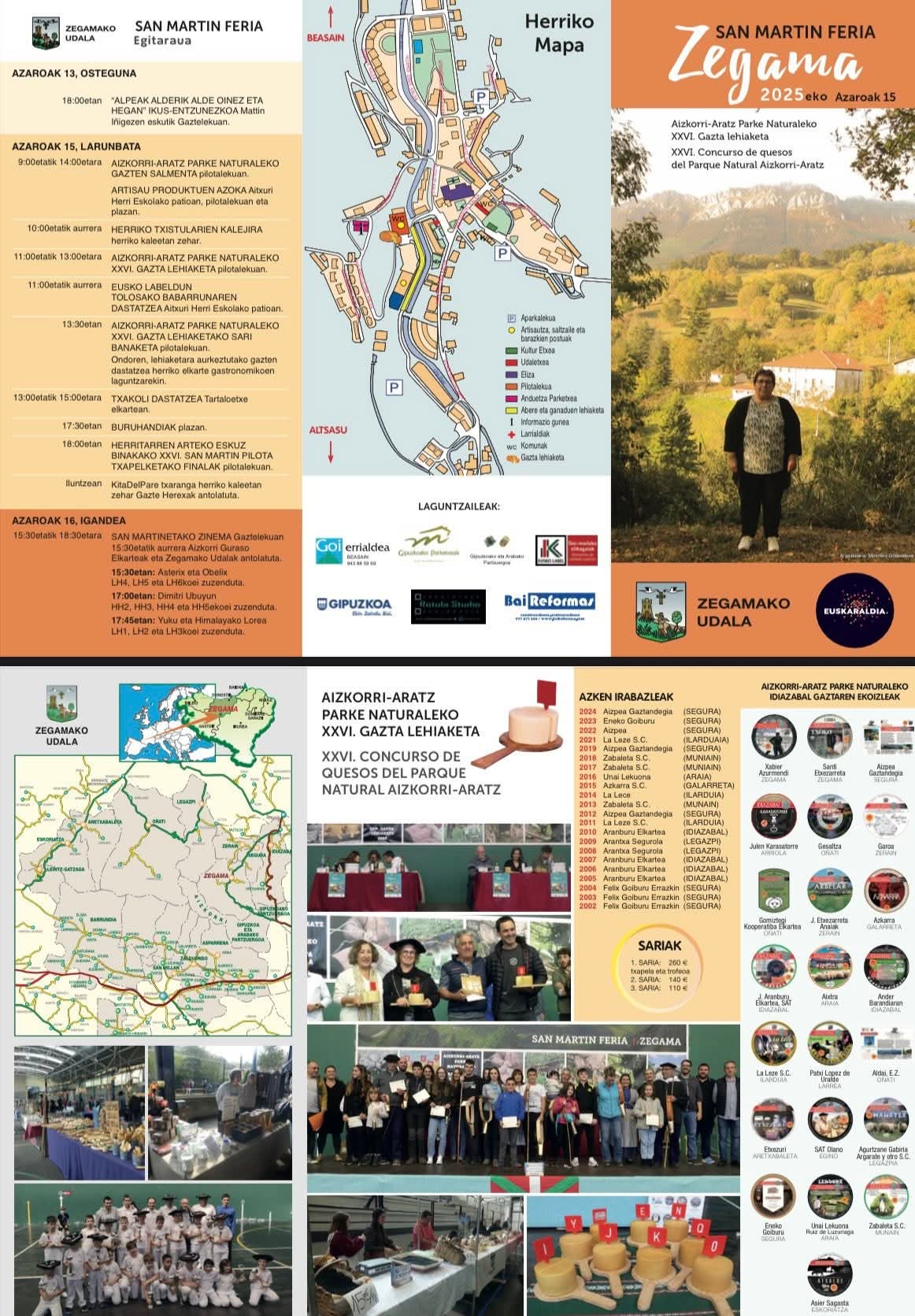- 13:30. Aizkorri-Aratza Parke Naturaleko XXVI. Gazta Lehiaketako sari banaketa, pilotalekuan.
