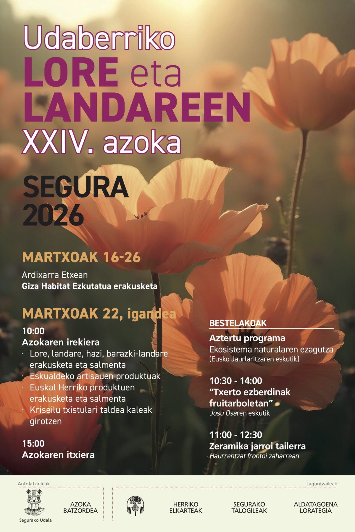Martxoaren 22an, 10:00etan hasita, Udaberriko Lore eta Landareen 24. azoka egingo dute Segurako plazan.