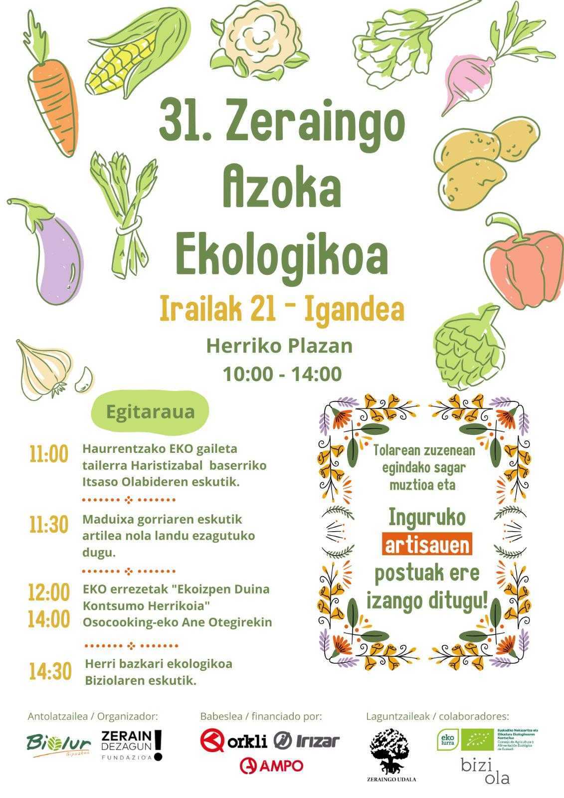 Irailaren 21ean (10:00-14:00) Zeraingo 31. Azoka Ekologikoa egingo dute plazan.