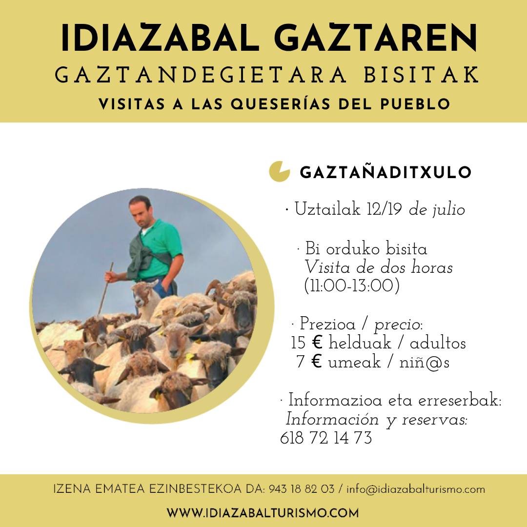 Uztailaren 19an (11:00-13:00) bisita gidatua izango da Idiazabalgo Gaztañaditxulo gaztandegira.