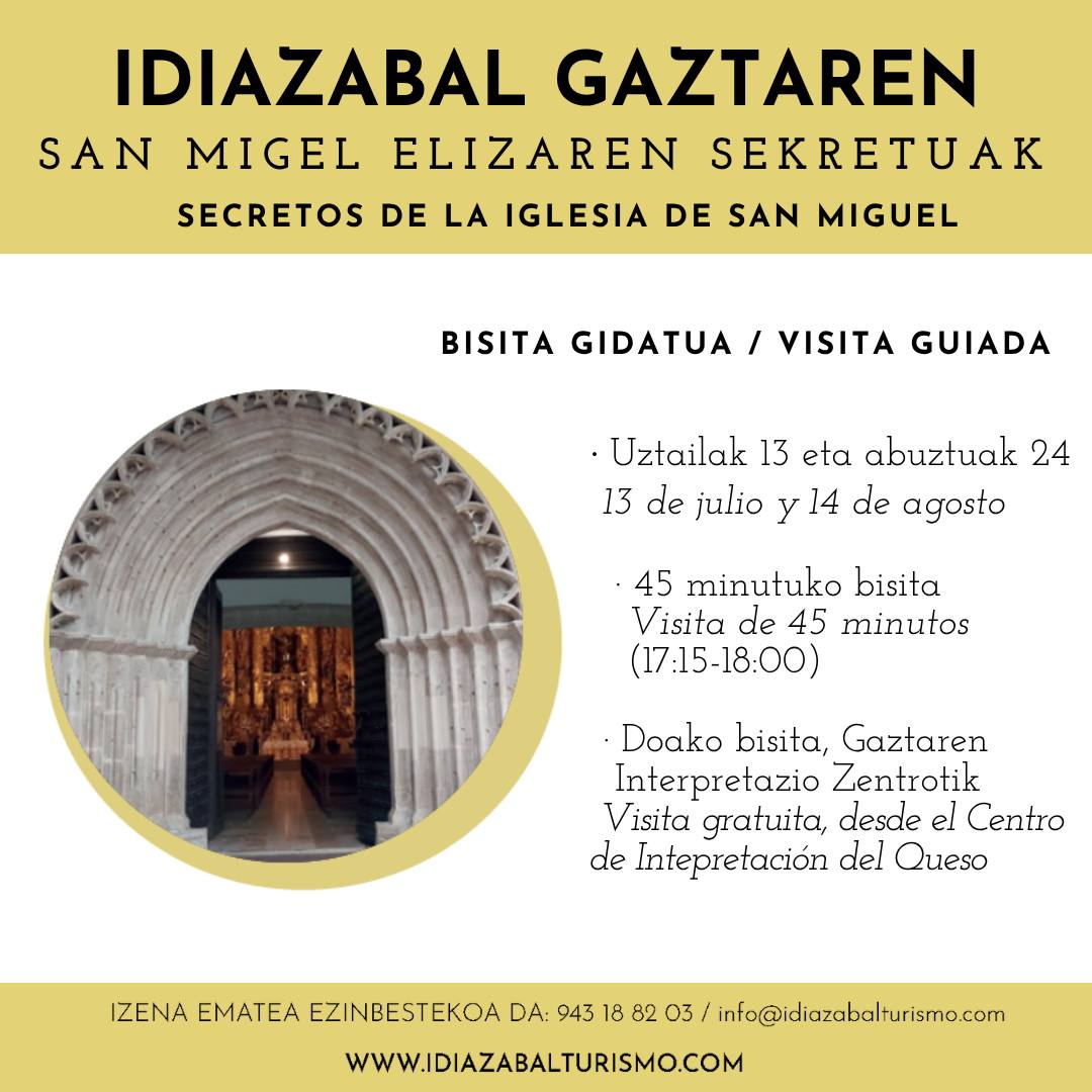 Abuztuaren 24an (17:15-18:00) San Migel elizaren sekretuak bisita izango da Idiazabalgo Gaztaren interpretazio zentrotik abiatuta.