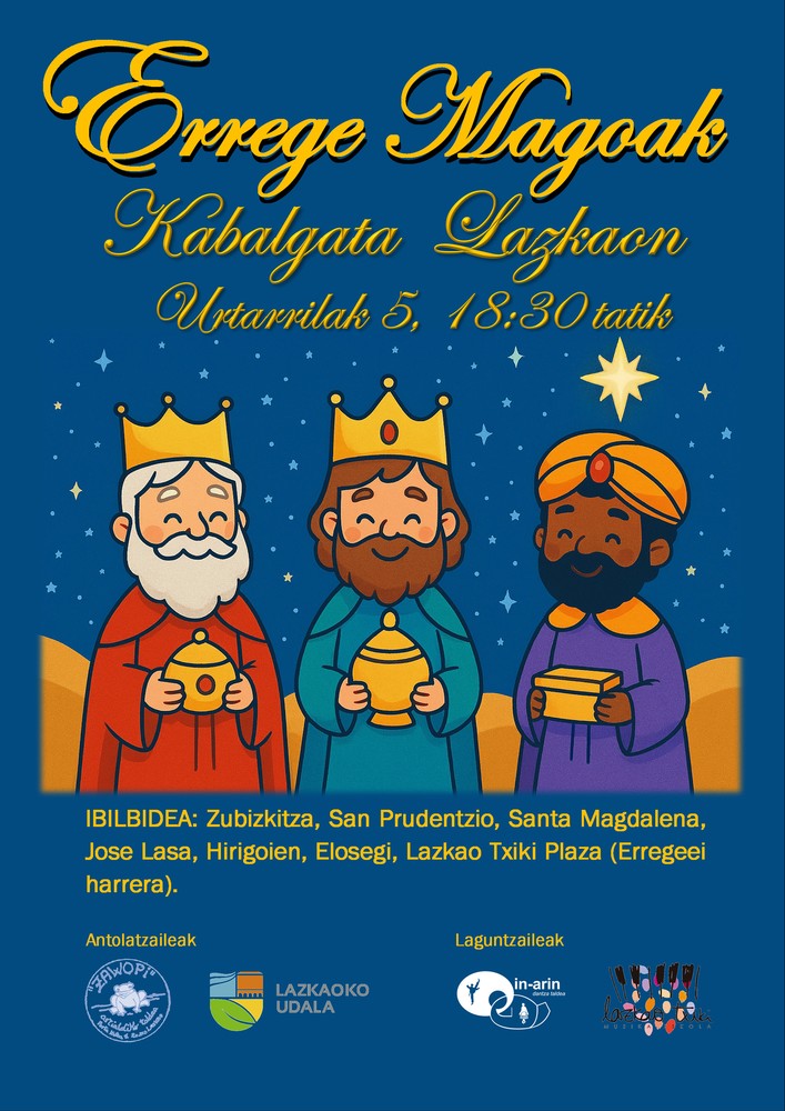 Urtarrilaren 5ean, 18:30ean hasita, Errege Magoen desfilea egingo dute Lazkaoko herrigunean.