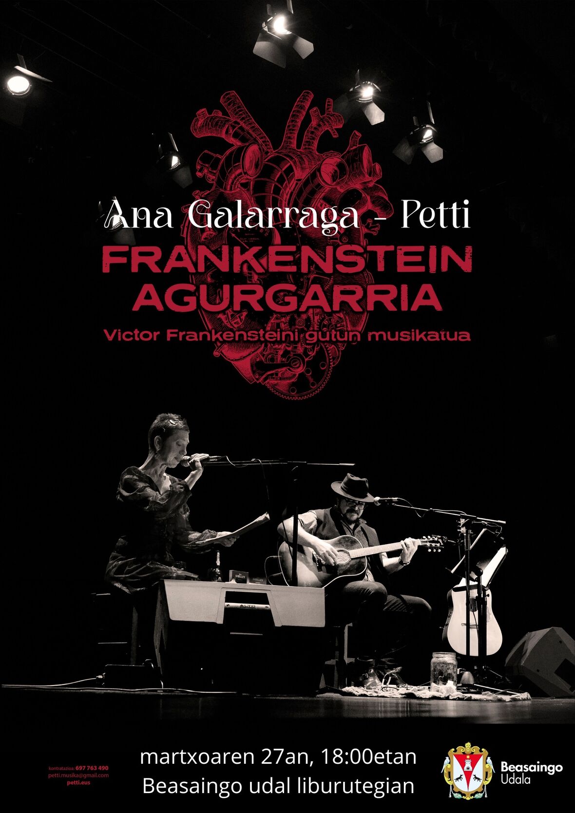 Martxoaren 27an, 19:00etan, Frankenstein agurgarria errezitaldi musikatua egingo dute Ana Galarragak eta Pettik Beasaingo liburutegian.