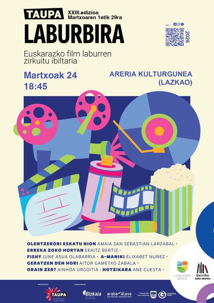 Martxoaren 24an, 18:45ean, Taupa mugimenduak antolatutako Laburbira 2026 zirkuituko zazpi film labur proiektatuko dituzte Areria aretoan: Olentzerori eskatu nion (Amaia San Sebastian); Erreka zoko hortan (Ekaitz Bertiz); Fishy (June Asua); A-Maniki (Elixabet Nuñez); Geratzen den hori (Aitor Gametxo); Orain zer? (Aihnoa Urgoitia) eta Hotzikara (Ane Cuesta).