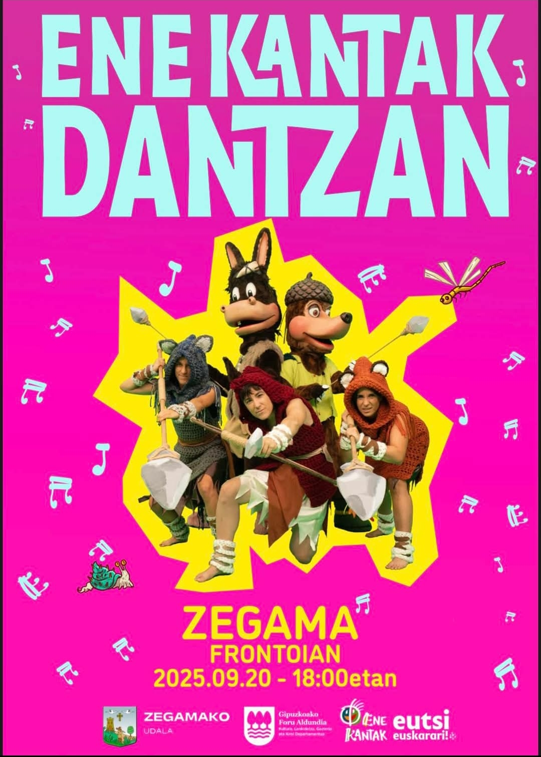 Irailaren 20an, 18:00etan, Ene kantak dantzan haur ikuskizuna izango da Zegamako frontoian.