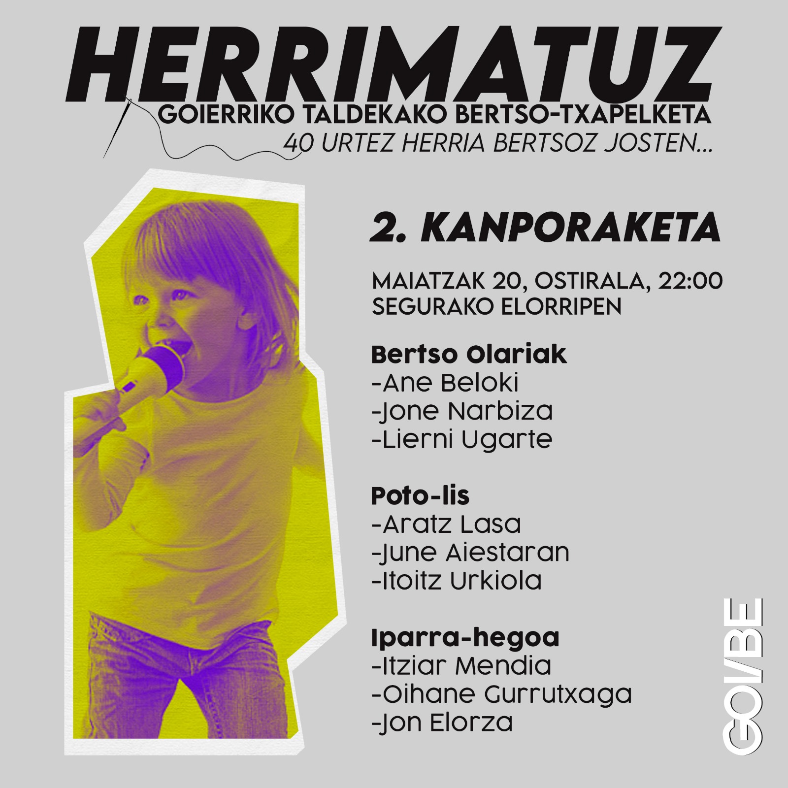 Herrimatuz Goierriko Taldekako Bertso Txapelketako 2. kanporaketa jokatuko dute Seguran: