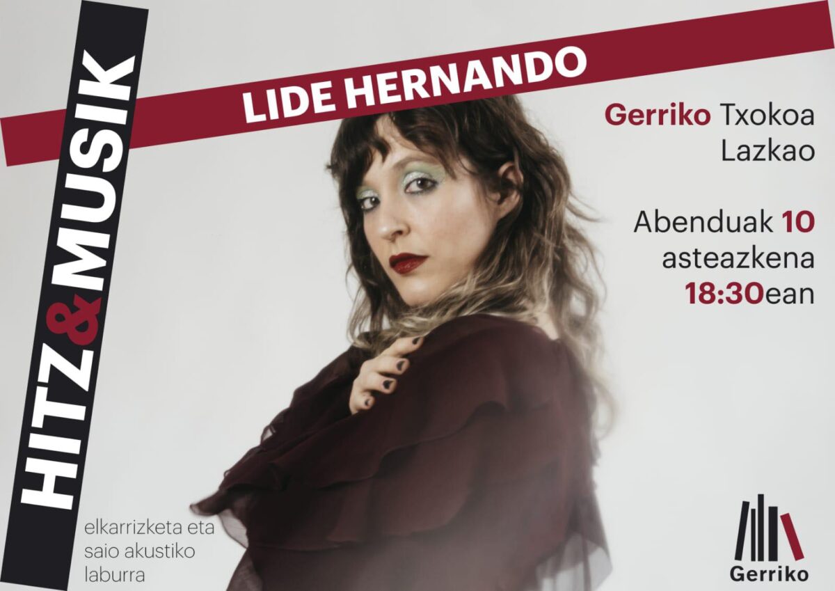 Abenduaren 10ean, 18:30ean, Lide Hernandok hitzaldia eta kontzertu akustikoa egingo du Lazkaoko Gerri Txokoan, Hitz&Musik zikloan.