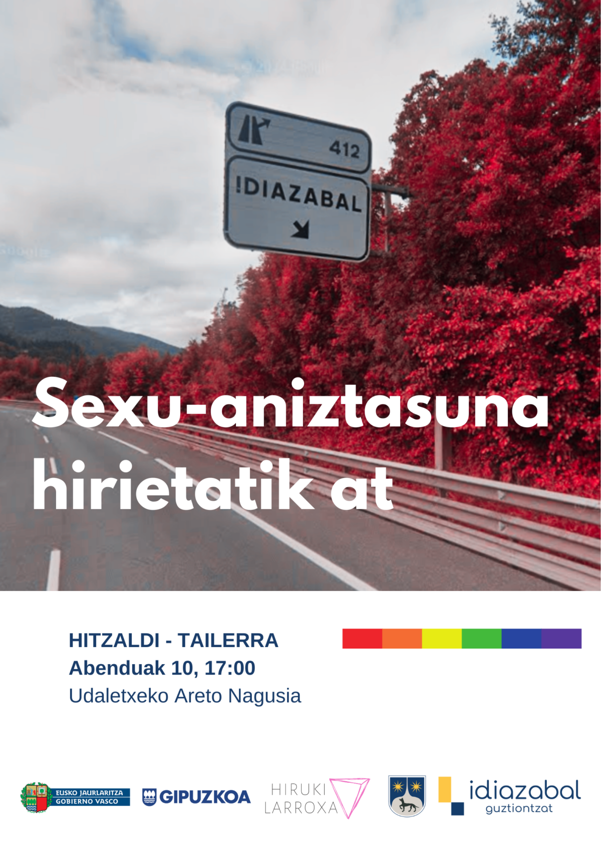 Abenduaren 10ean, 17:00etan, Sexu aniztasuna hirietatik at hitzaldi-tailerra izango da Idiazabalgo udaletxeko areto nagusian.