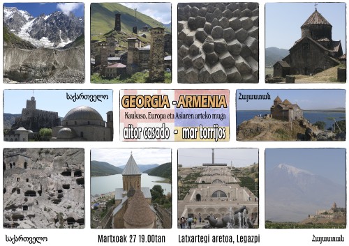 Martxoaren 27an, 19:00etan, Aitor Casadok eta Mar Torrijosek Georgia eta Armenia. Kaukaso, Europaren eta Asiaren arteko mugan ikus-entzunezkoa proiektatuko dute Legazpiko Latxartegi aretoan.