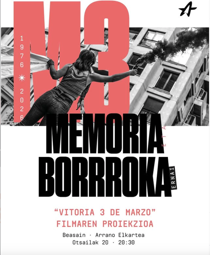 Otsailaren 20an, 20:30ean, Vitoria 3 de marzo filma izango da ikusgai Beasaingo Arrano elkartean.