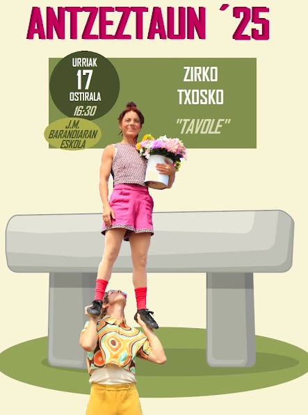 Urriaren 17an, 16:30ean, Zirko Txoskok Tavole ikuskizuna egingo du Ataungo Joxemiel Barandiaran eskolan, Antzeztaun 2025 zikloaren barruan.