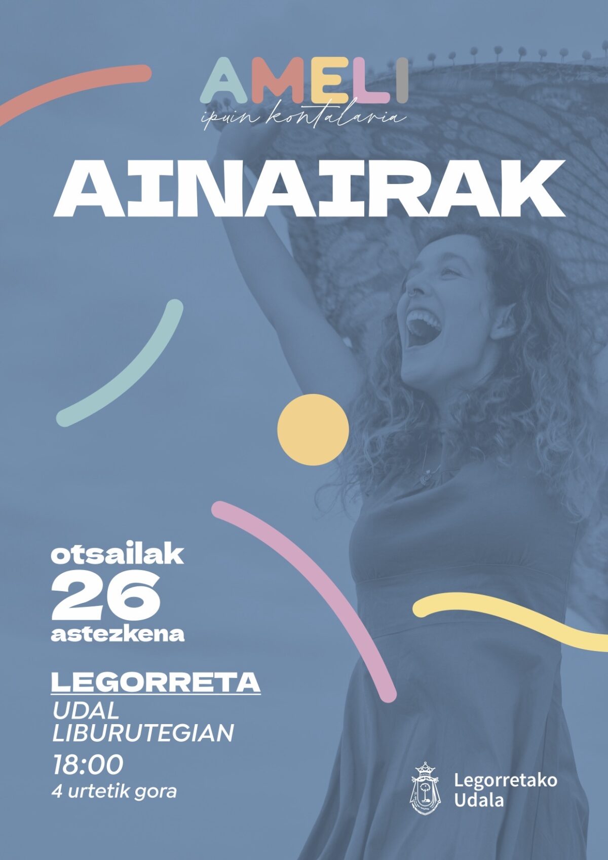 Otsailaren 26an, 18:00etan, Ainairak haurrentzako ipuin kontaketa egingo du Amelik Legorretako liburutegian.