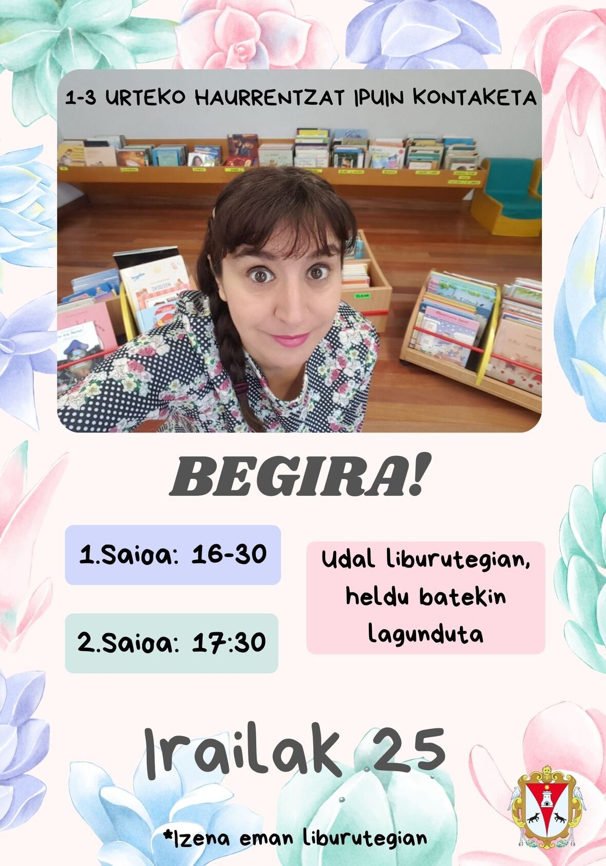 Irailaren 25ean, 16:30ean eta 17:30ean, Ane Apikak Begira! ipuin kontaketa egingo du Beasaingo udal liburutegian.
