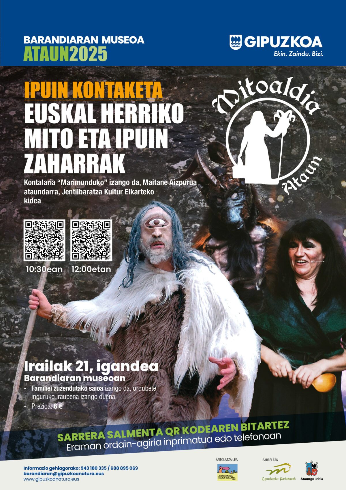 Maitane Aizpurua 'Marimunduko' ipuin kontaketa saio batean.Jentilbaratza Irailaren 21ean, 10:30ean eta 12:00etan, Marimundukok Euskal Herriko mito eta ipuin zaharrak kontatuko ditu Ataungo Barandiaran museoan, Ataungo VIII. Mitoaldiaren barruan.