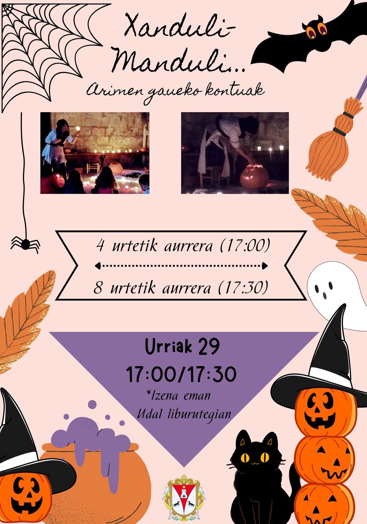 Urriaren 29an, 17:00etan (4-7 urte) eta 17:30ean (8 urtetik gora) Xanduli manduli… Arimen gaueko kontuak ipuin kontaketa izango da Beasaingo liburutegian.