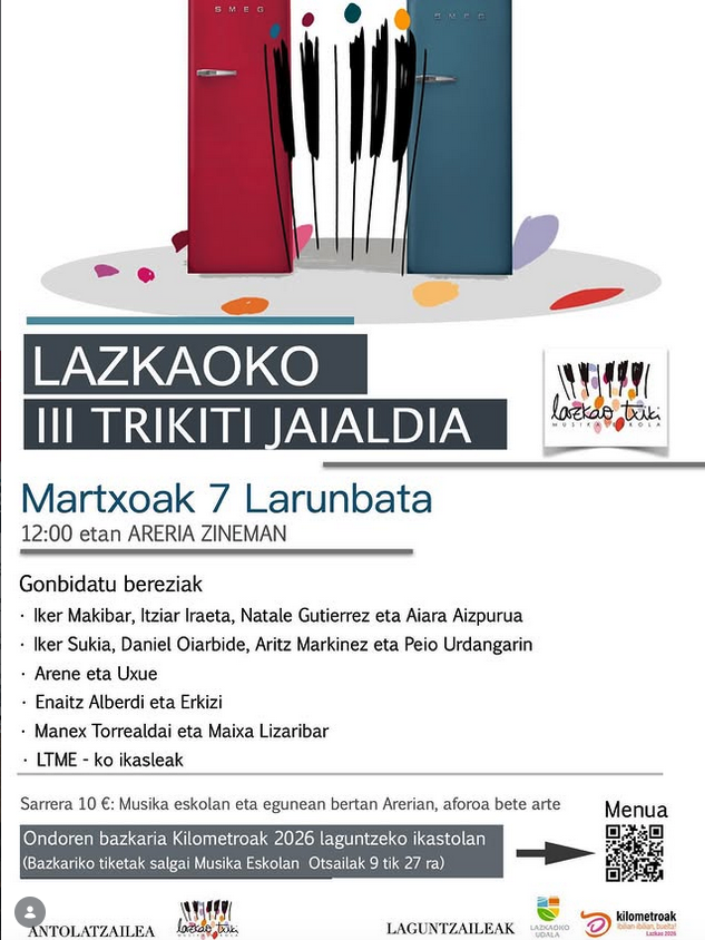 Martxoaren 7an, 12:00etan hasita, Lazkaoko III. Trikitixa jaialdia egingo dute Areria aretoan. Ondoren bazkaria egingo dute 2026ko Kilometroak jaiari laguntzeko.