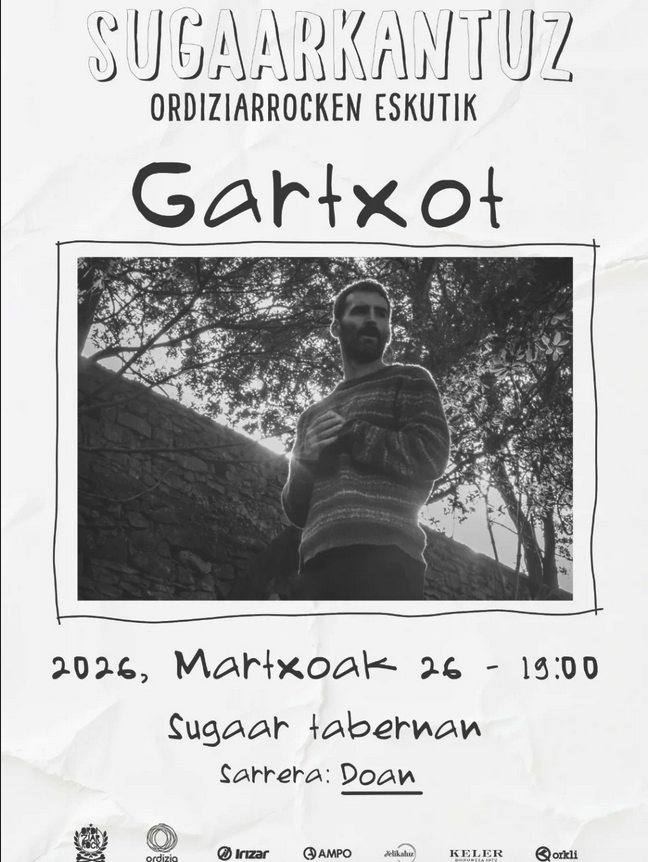 Martxoaren 26an, 19:00etan, Gartxot bakarlariak kontzertua egingo du Ordiziako Sugaar tabernan, Ordiziarrock-en Sugaarkantuz ekimenaren barruan.