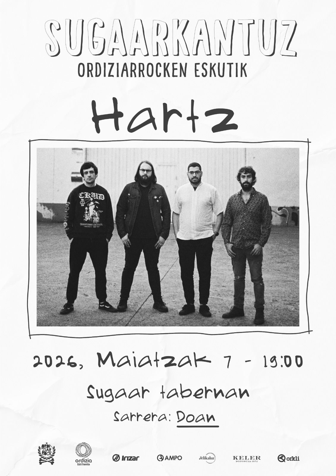 Maiatzaren 7an, 19:00etan, Hartz taldeak kontzertua egingo du Ordiziako Sugaar tabernan, Ordiziarrock-en Sugaarkantuz ekimenaren barruan.