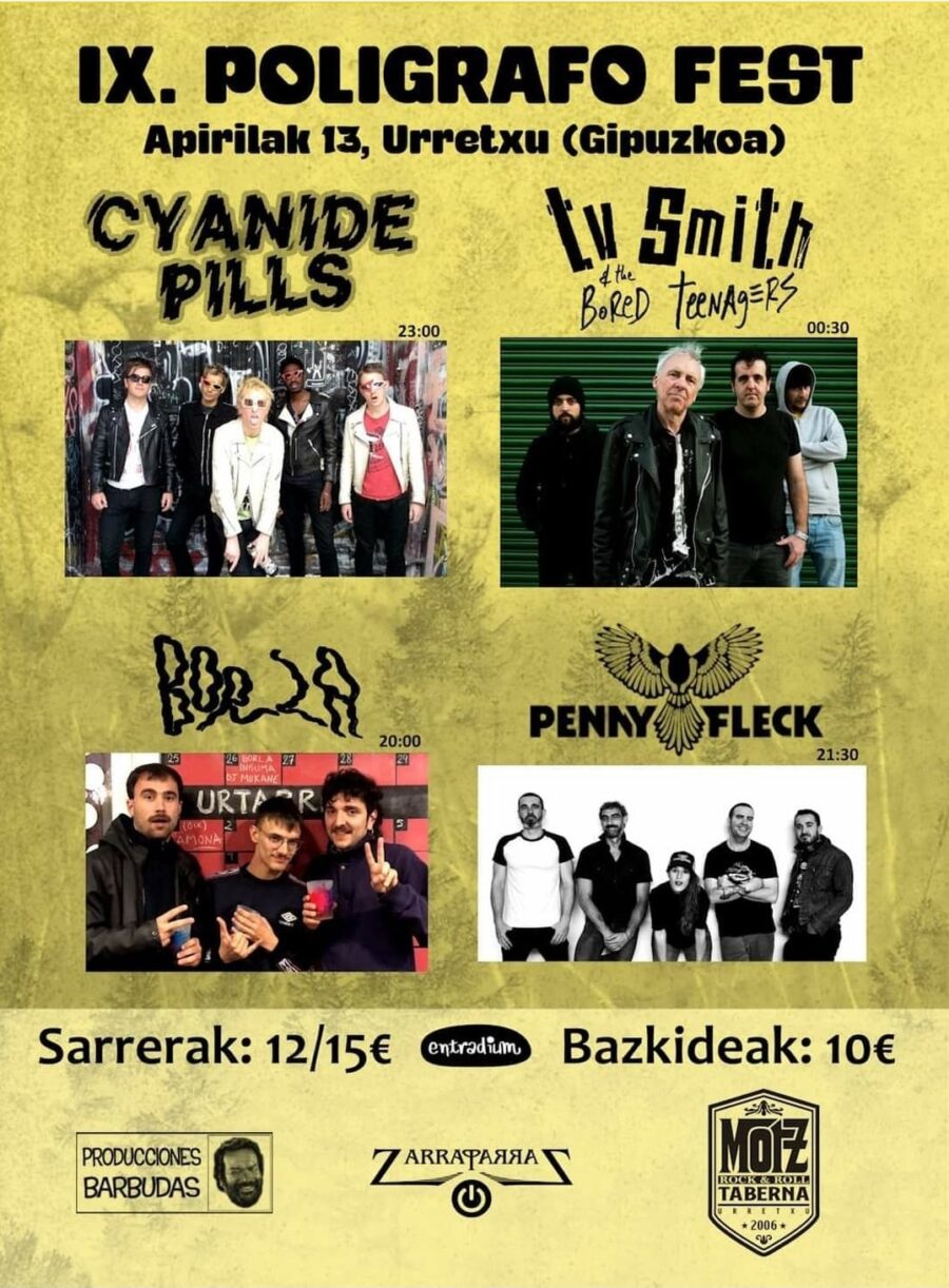 TV Smith and The Bored Teenagers play The Adverts, Kafe Antzokia, Bilbao, 18/VII/2014. Foto por Dena Flows Apirilaren 13an, 20:00etan hasita, IX. Poligrafo Fest musika jaialdia izango da Nekolaldeko aparkalekuan, Urretxun, ZarraparraZ kolektiboak antolatuta. Lau taldek joko dute.