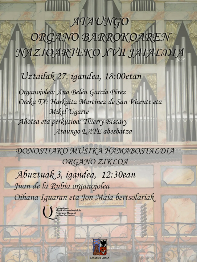 Abuztuaren 3an, 12:30ean, Juan de la Rubia organo-jotzaileak eta Oihana Iguaran eta Jon Maia bertsolariek kontzertua egingo dute Ataun San Martingo elizan, Donostiako Musika Hamabostaldiaren Zikloaren barruan.