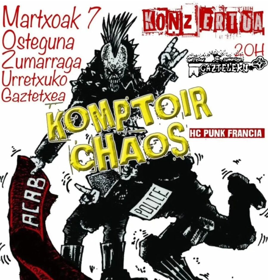 Martxoaren 7an, 20:00etan, Komptoir Chaos talde frantziarrak kontzertua egingo du Urretxu-Zumarragako Gaztetxean.