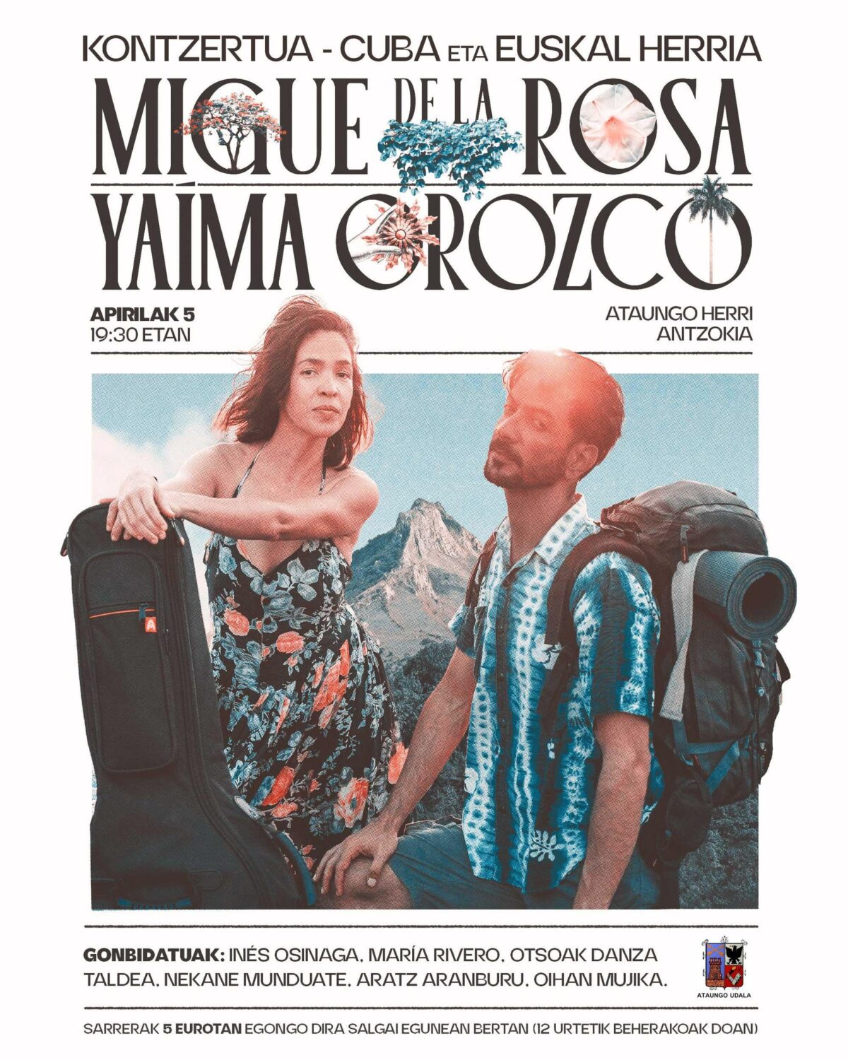 Apirilaren 5ean, 19:30ean, Kuba eta Euskal Herria kontzertua egingo dute Ataungo Herri Antzokian. Migue de la Rosa eta Yaima Orozco kubatarrek joko dute, eta hainbat gonbidatu izango dituzte lagun emanaldian.