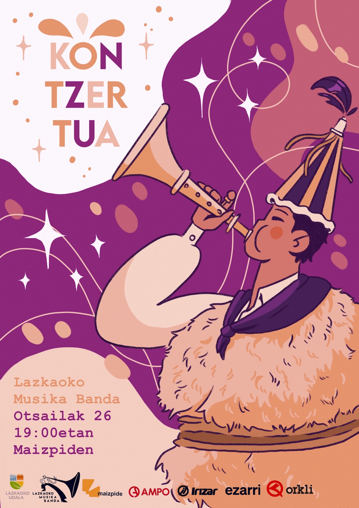 Otsailaren 26an, 19:00etan, Lazkaoko Musika Bandak Inauterietako kontzertu irekia egingo du Lazkaoko Maizpide euskaltegian.