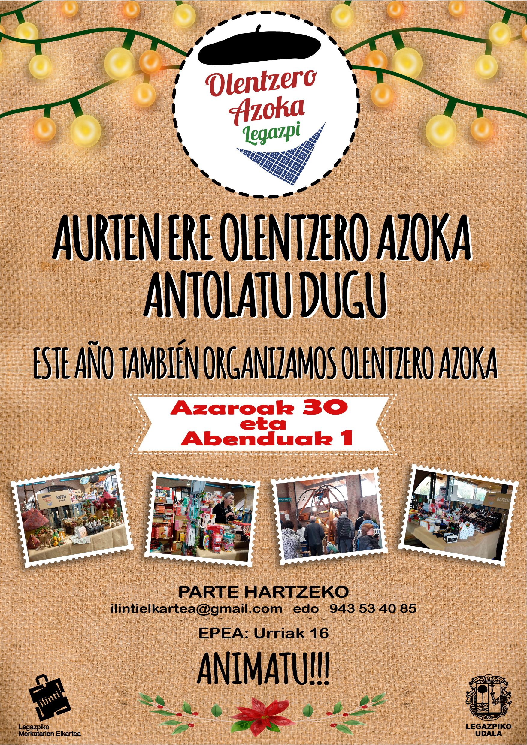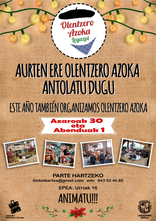 Legazpiko Ilinti merkatari elkarteak eta udalak antolatuta, Olentzero Azoka egingo dute, azaroaren 30ean eta abenduaren 1ean.