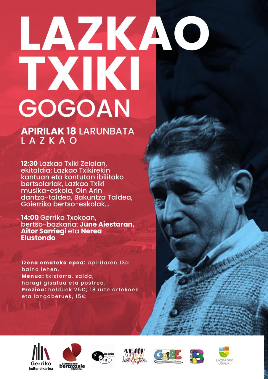 - 12:30. Lazkao Txikirekin kantuan eta kontutan ibilitako bertsolariak, Lazkao Txiki musika eskola, Oin Arin dantza taldea, Bakuntza taldea, Goierriko bertso eskolako bertsolariak…, Lazkao Txiki zelaian.
