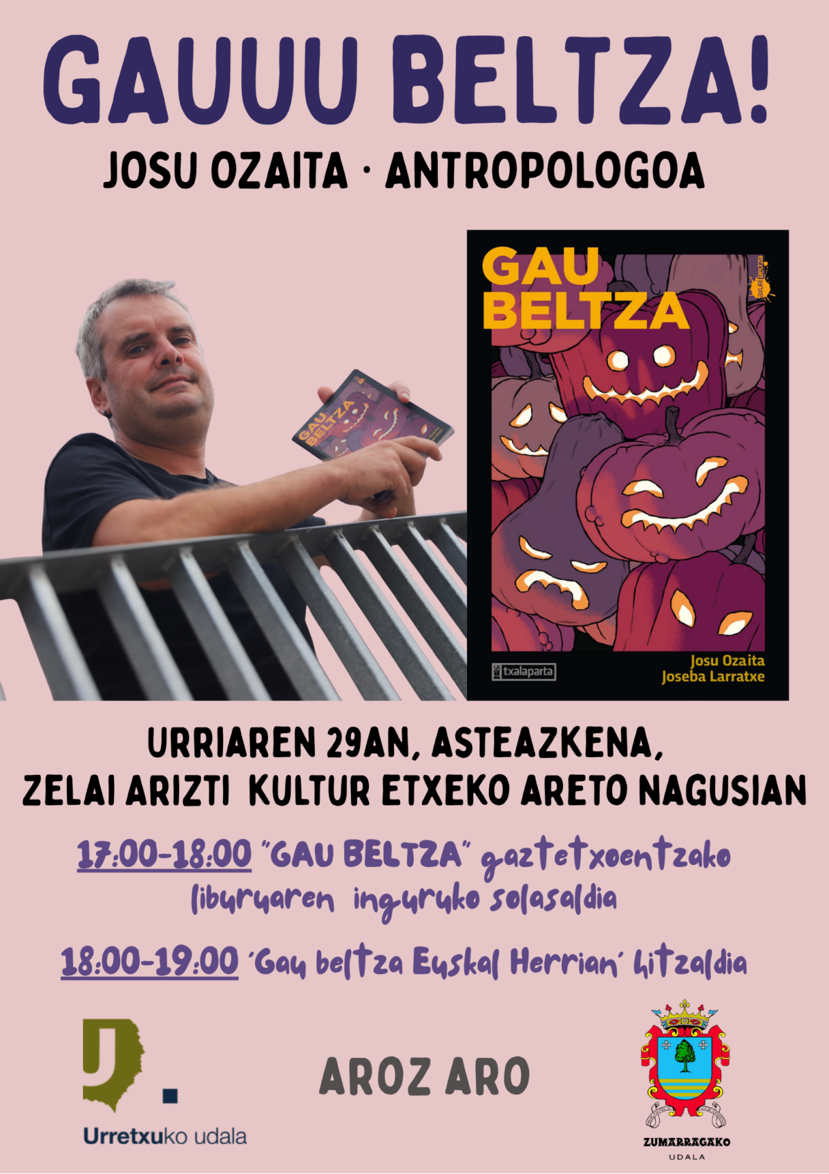 - 18:00-19:00. Gaztetxoentzako Gau Beltza liburuari buruzko solasaldia, Zelai Arizti kultur etxean.