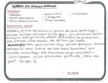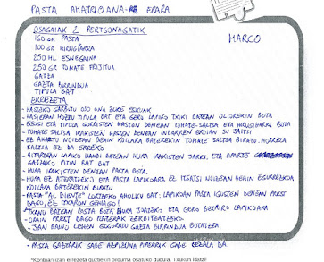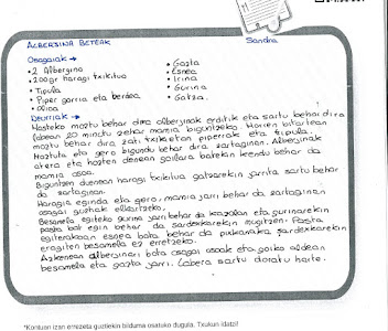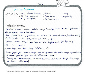 Goierriko sakona taldeko ikasleak errezetak lantzen aritu dira eta bakoitzak bana prestatu du. Gainerako ikasleekin ere partekatu nahi izan dute eta, beraz, hemen dituzue eurek idatzitako errezetak. On egin!