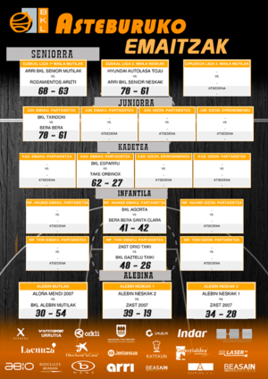 Ikusi BKL saskibaloi taldeko asteburuko partiden karteldegia.